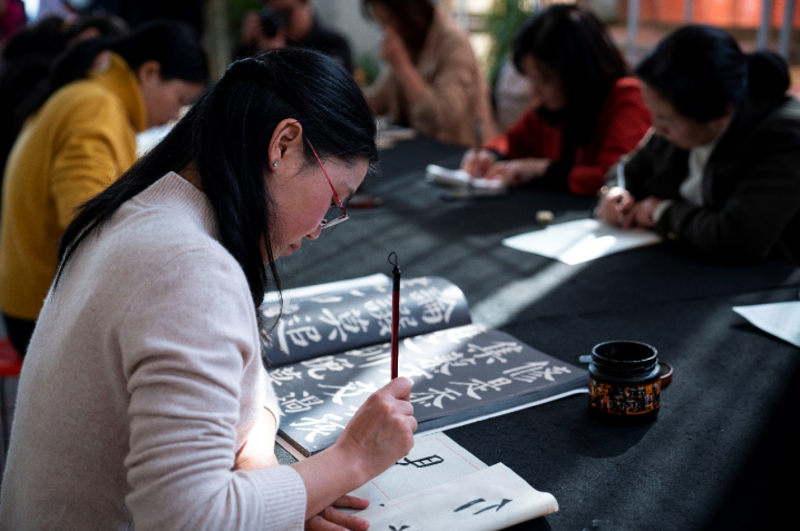 村民在练习书法 刘建维摄