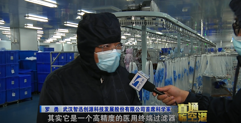 武汉智迅创源科技发展股份有限公司首席科学家罗勇:看起来是个纽扣,其实它是高精度的医用终端过滤器,它最大的作用就是可以极大地提高药物的纯净度,进而可以降低和控制、避免很多临床上的一些输液不良反应。