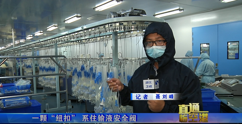 记者聂刘峰:我手上拿的这个输液器和我们平常所用的一般的输液器不同的是,它增加了一个像纽扣这样的一个部件,也正是因为它让我们的输液变得更加安全。