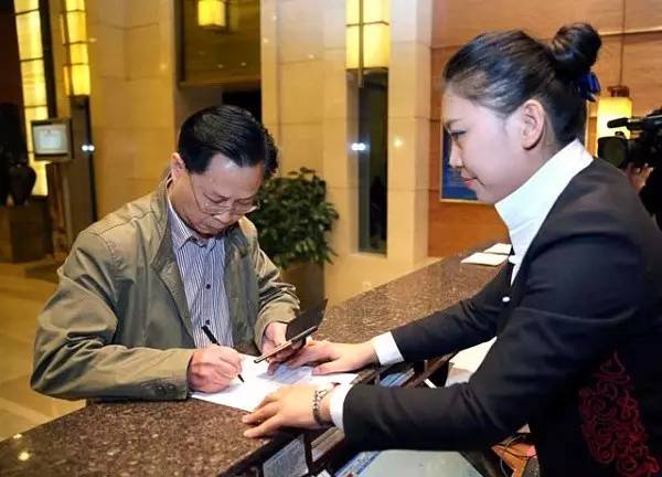 图为温州商人陈生(左)在北京民族饭店填写增值税发票客户信息表。