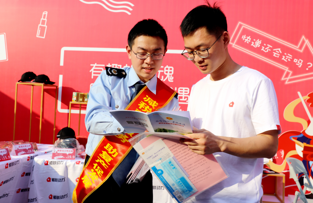 图为税收宣传月期间,浙江税务部门走上街头宣传减税降费政策。