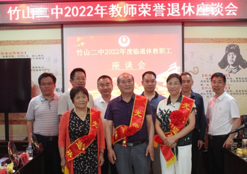 6月16日下午,湖北省竹山县第二中学四楼党员活动室里暖意浓浓,学校工会为即将退休的5位老师举行荣誉退休座谈会,学校班子成员及临近退休的部分老教师参加。所有教师畅所欲言,忆讲坛峥嵘,会场气氛融洽,欢声不绝。