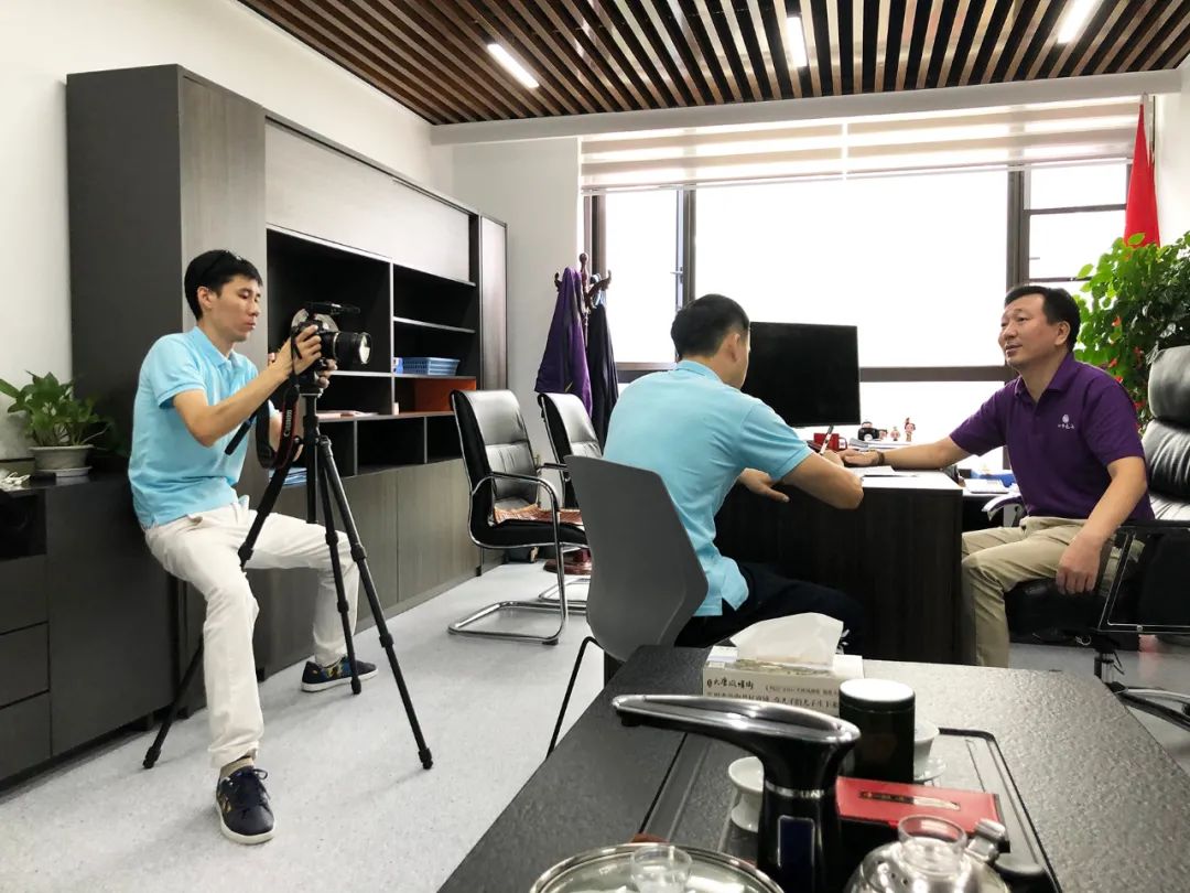 ▲ 四季花海董事长杜勇(右一)正在接受湖北广播电视报记者采访