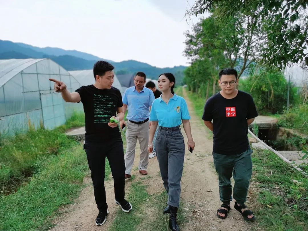 ▲神峰山庄副总经理叶展(左一)带领本报记者参观神峰山庄蔬菜基地