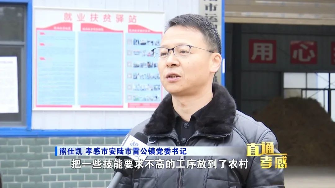 孝感市安陆市雷公镇党委书记 熊仕凯:把产业链条延伸到乡村,把一些技能要求不高的工序放到了农村,组织不便外出打工的贫困人口,利用农闲时间到扶贫车间进行生产加工。