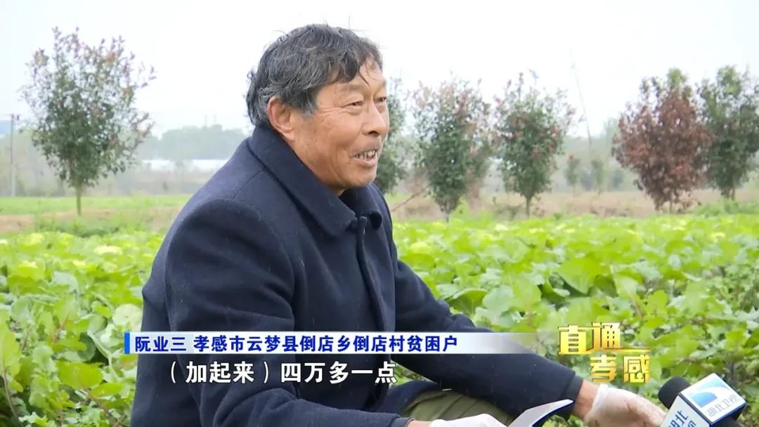 孝感市云梦县倒店乡倒店村贫困户 阮业三:农场拿工资,一年将近四万块,承包(出去)土地有几千块钱,(加起来)四万多一点。