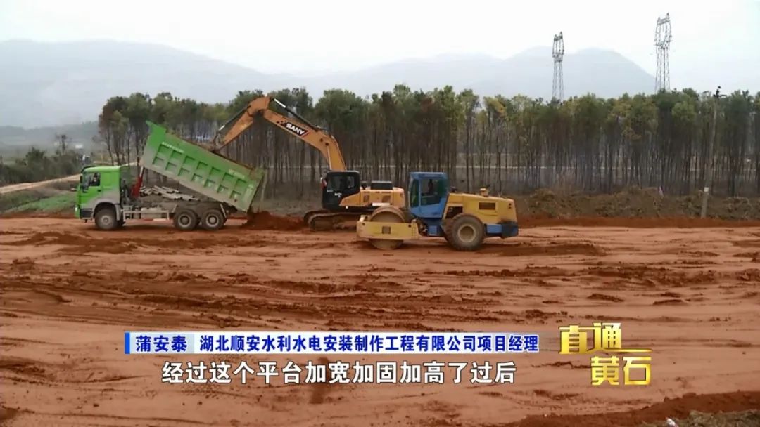 湖北顺安水利水电安装制作工程有限公司项目经理 蒲安泰:我们现在目前在施工的是我们一个内平台的土方填筑,机械的碾压、压实达到一定的密实度,保护堤身不受洪水的影响。