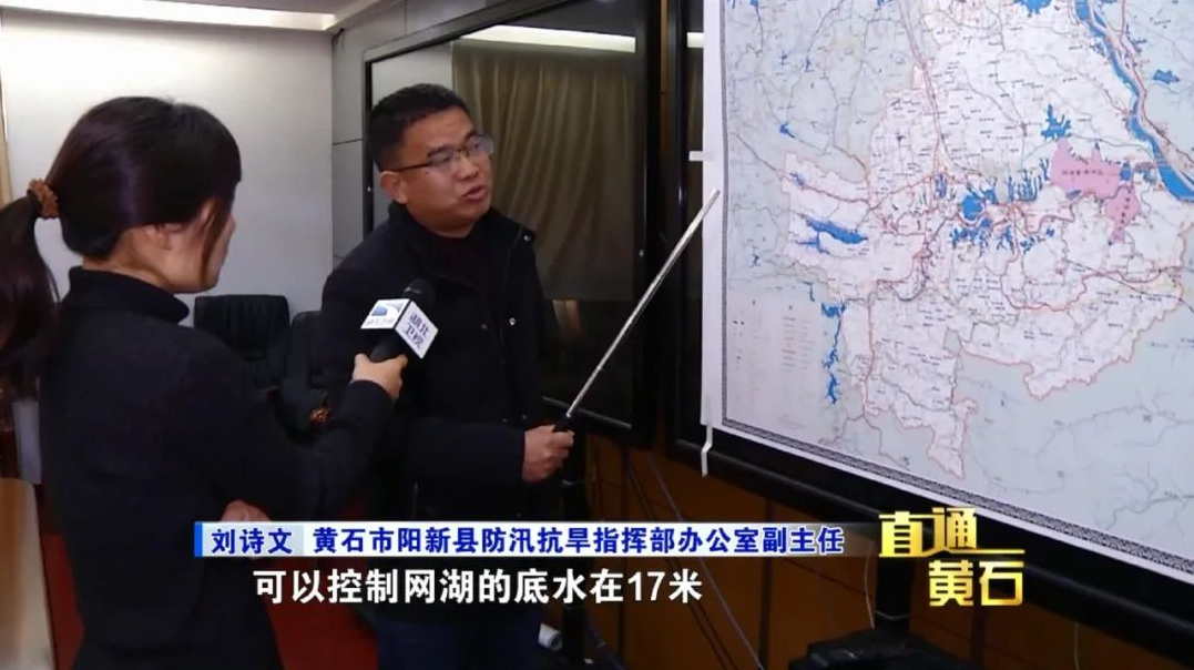 黄石市阳新县防汛抗旱指挥部办公室副主任 刘诗文:我们谋划建立富池第二电排站,通过这个电排站可以控制网湖的底水在17米,我们在分洪的时候就可以分到设计的分洪水位22.7米,那么我们就可以保证网湖分洪量可以达到2.49亿立方米。