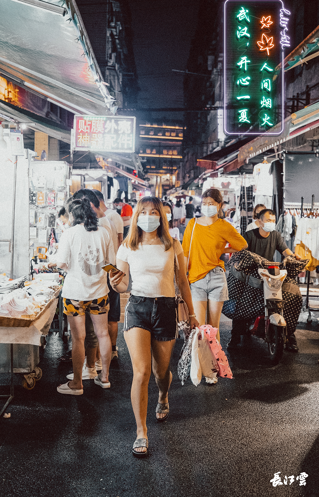 2020年10月21日晚,武汉江汉路步行街提升改造后再回归。