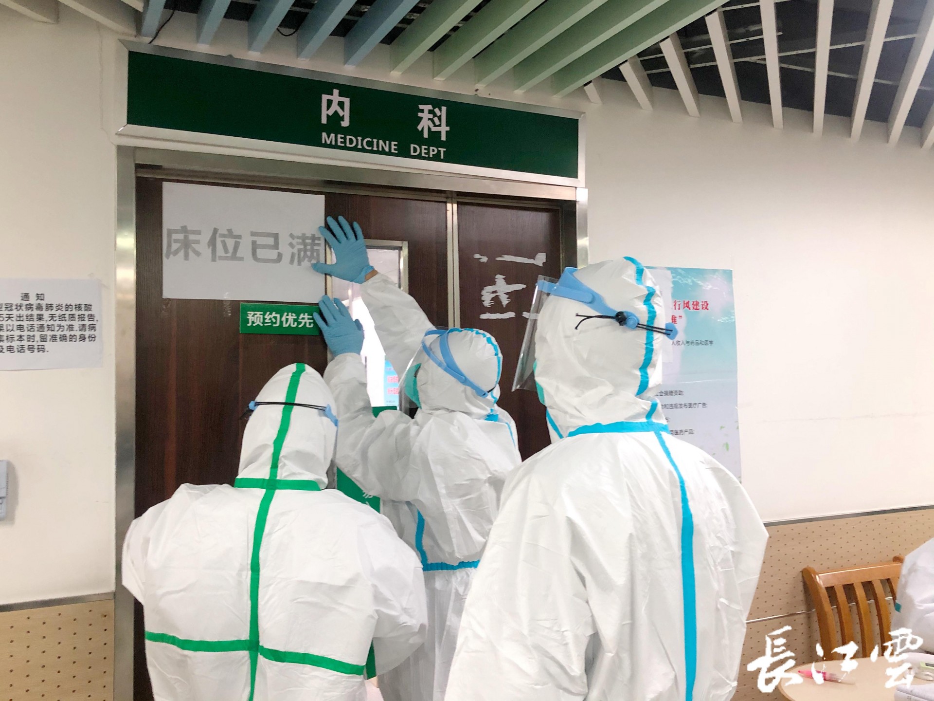 2020年1月27日,武汉一家医院正在张贴床位已满的提示纸张。