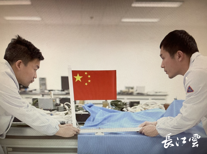 2020年12月4日,嫦娥五号探测器在完成了月面采样工作之后,升起了一面五星红旗,此次国旗展开是我国在月球表面首次实现国旗的“独立展示”,这次国旗从打开到竖起,仅耗时1秒钟,是由在鄂央企中国航天三江集团自主研发设计的国旗展示系统来完成的。