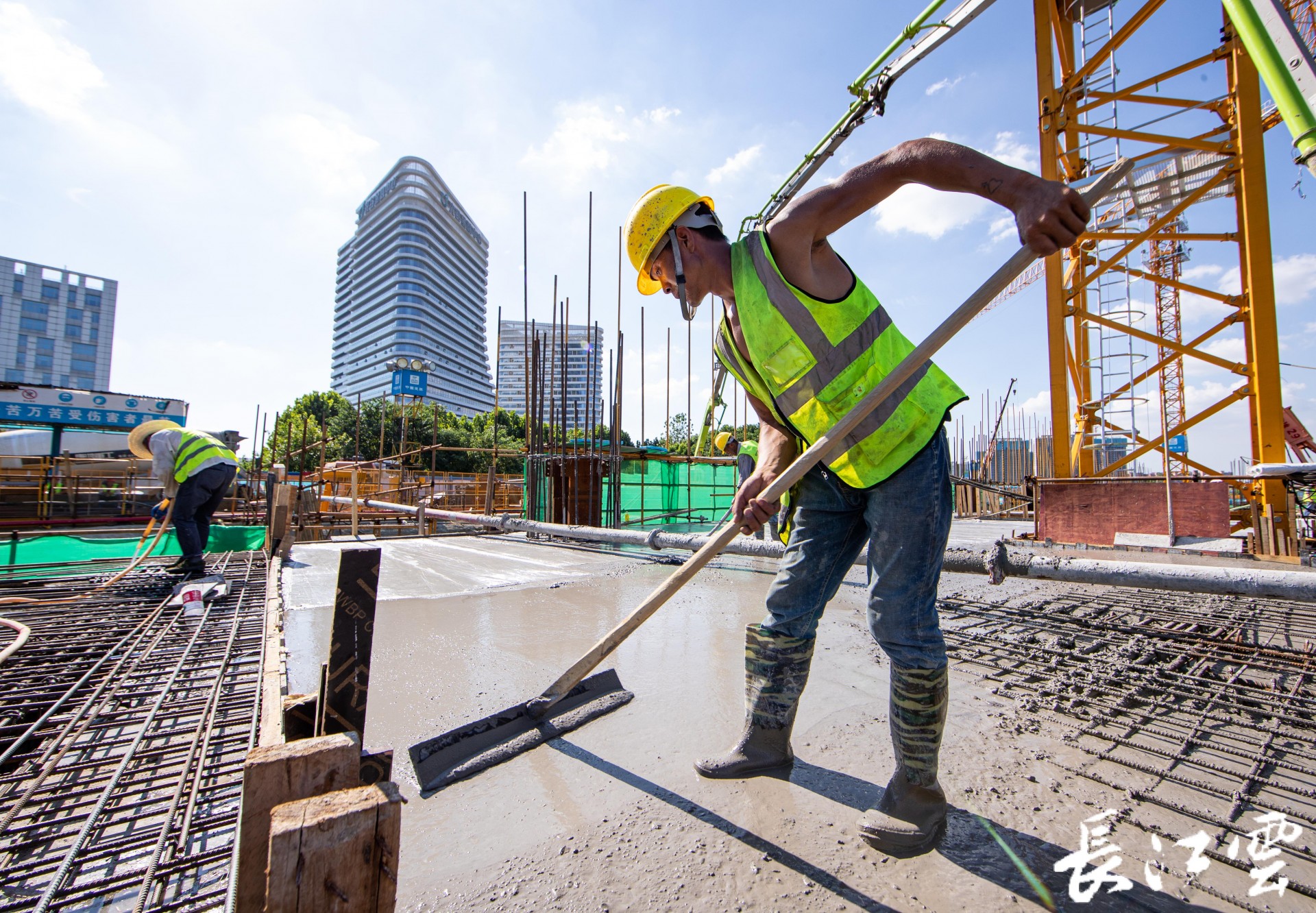 2020年8月3日,在武汉一工地上,工人们正在烈日下抢抓工期。