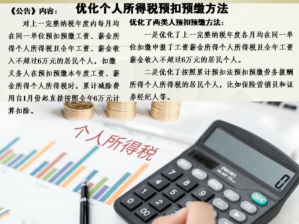个人所得税,可以说是和我们每一个人关系最密切的税种了。今年是实行个人所得税汇算清缴的第二年,国家税务总局最近对两类纳税人的个税预扣预缴方法进行了简便优化,新方法有哪些变化?扣缴义务人应该如何操作?