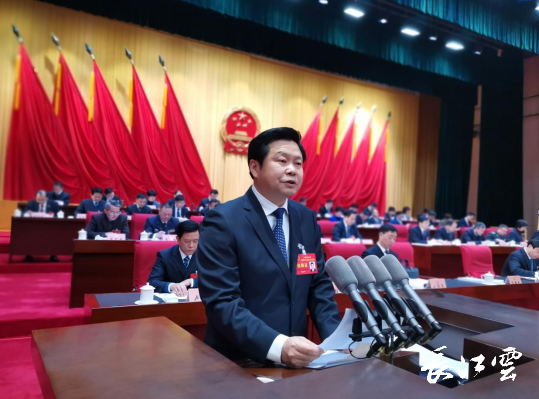 1月12日上午,十堰市长陈新武向市五届人大五次会议作《政府工作报告》。
