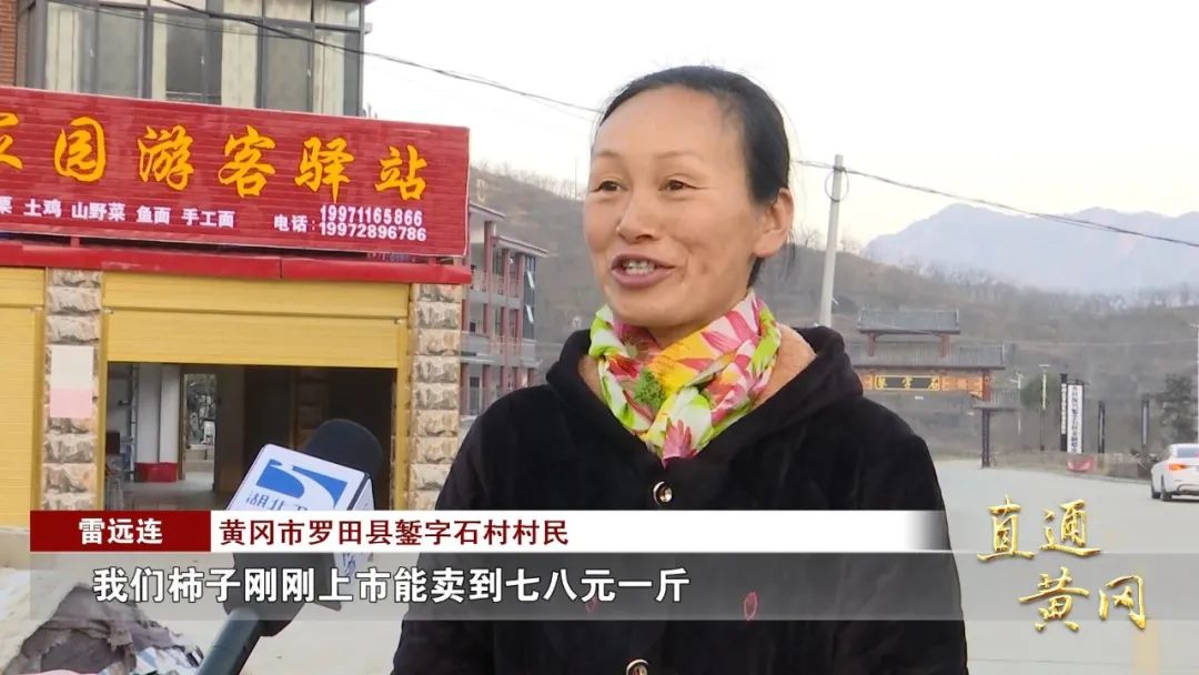 黄冈市罗田县錾字石村村民 雷远连:我们柿子刚刚上市能卖到七八元一斤,完全成熟最低能卖到五元钱一斤,每年每家每户能增加六至八千元的收入,我们村也就成为小康村。