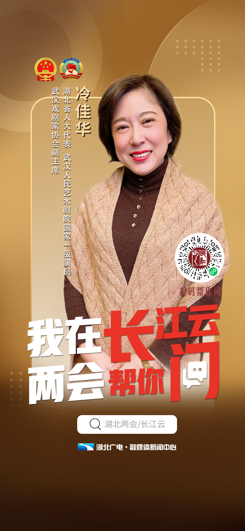 “我在长江云,两会帮你问!”2021年湖北“两会”召开之际,湖北省人大代表,武汉人民艺术剧院国家一级演员,武汉戏剧家协会副主席冷佳华入驻长江云头条频道。广大网友可以通过长江云为代表委员们订制的“民意带言小程序”与冷佳华代表互动。一起来为湖北高质量发展来一次云端“头脑风暴”吧!