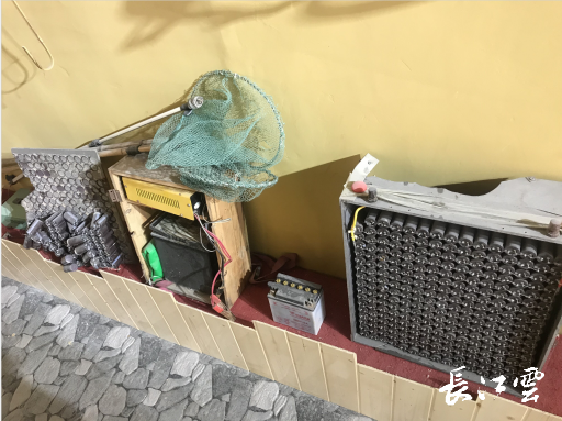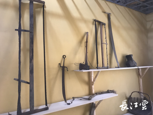 在村委会旁,新改造修建的长坊村生态博物馆显得格外醒目,里面都是村民们自发捐赠的老物件。走进去,最显眼的是墙壁上猎套和铁夹环环相扣串成的26个“长铁链”,足足挂满一面墙,墙角还放着捕鱼器和电网等工具。