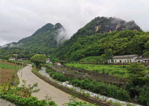 停车驻足,远望青山巍峨、崖壁锦绣,俨然一幅山水画卷;近观亭台流水、蔬果满园,一派田园风光尽展眼前。