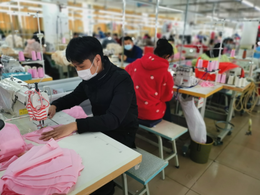 “你来得正是时候,我们正发愁招人呢。”蒋玉印说,公司是做品牌服装代加工的,效益一直不错。今年订单增加20%,预备扩大规模、增加10个组,就有了400人的用工缺口。虽然工人平均月工资在6000元以上(包吃住),但由于当地不少人选择外出务工,招工难就成为厂里头疼的问题。