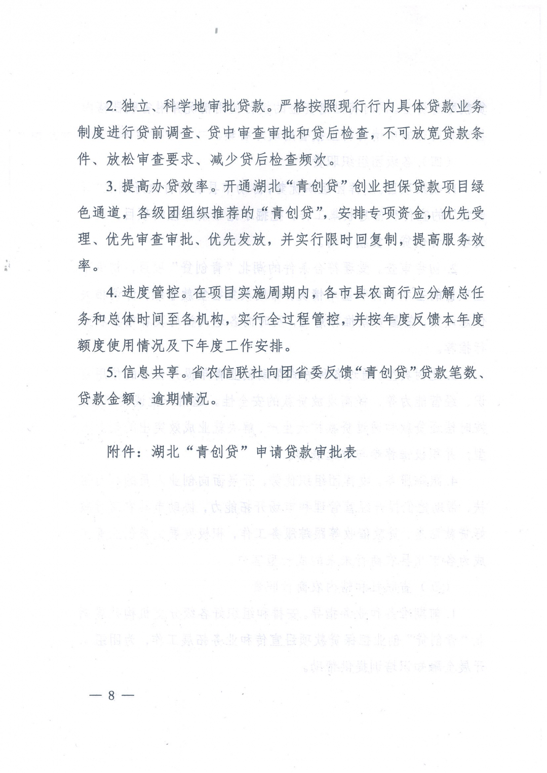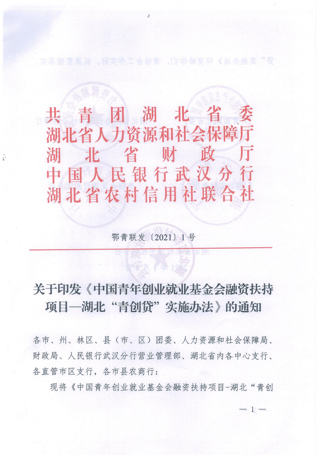 在团中央、中国青年创业就业基金会指导和支持下,团省委联合省人社厅、省财政厅、中国人民银行武汉分行、省农信联社开展湖北“青创贷”扶持项目,1亿元贴息贷款支持个人和小微企业解决在自主创业过程中的流动资金不足问题。