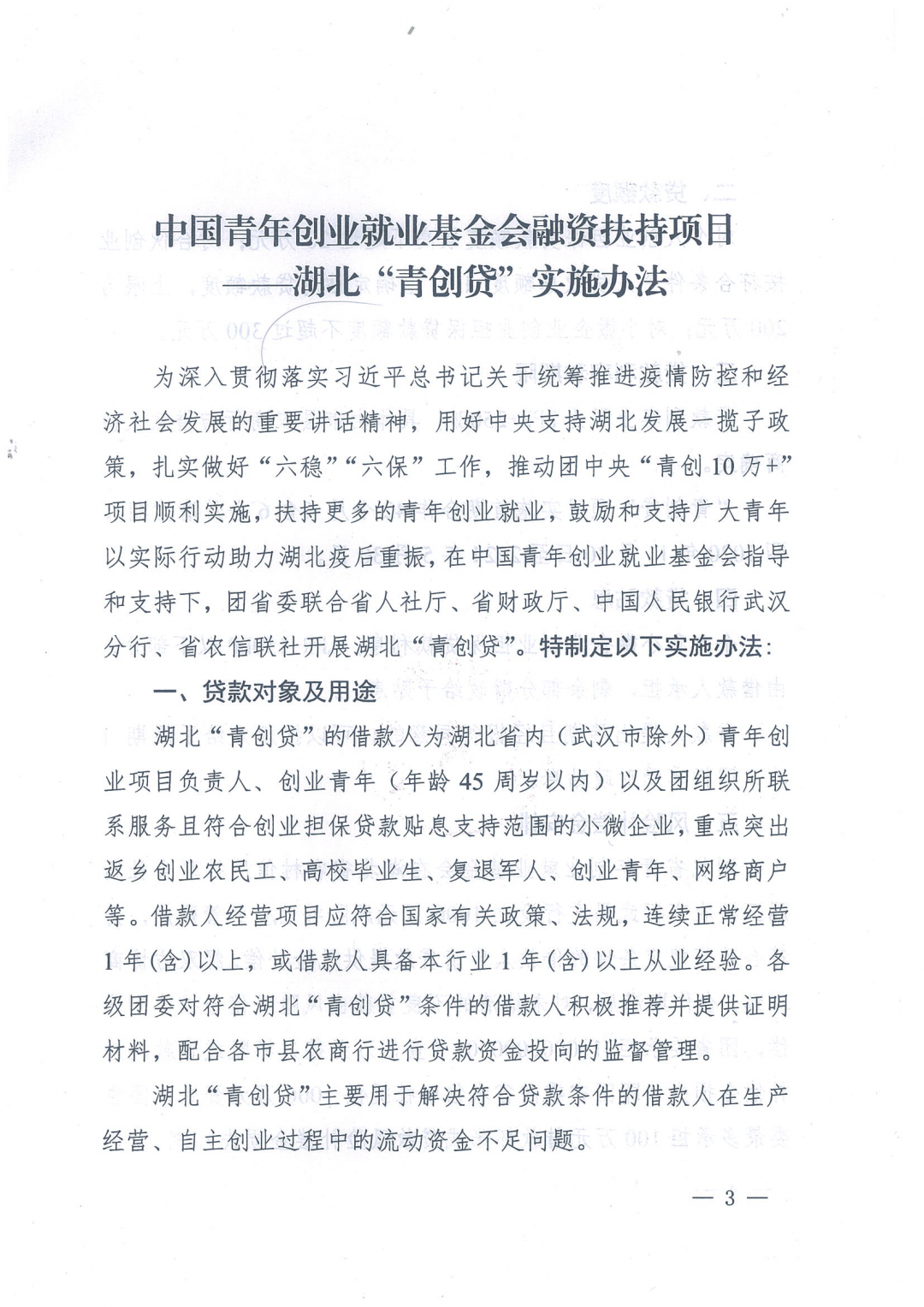 湖北省内(武汉市除外)青年创业项目负责人、创业青年(年龄45周岁以内)以及团组织所联系服务且符合创业担保贷款贴息支持范围的小微企业。