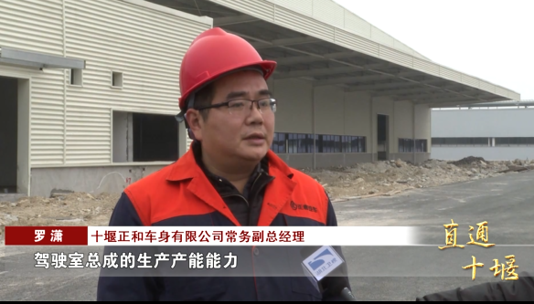 十堰正和车身有限公司常务副总经理 罗潇:一期项目工程预计是在今年的5月份投产,驾驶室总成的生产的产能能力,将从现在的6万台提升到16万台左右,在二期工程提升到20万到25万台左右。