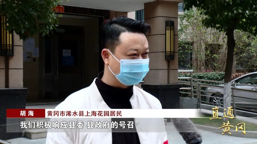 黄冈市浠水县上海花园居民 胡海:作为一名党员干部,我们积极响应县委、县政府的号召,八小时之内在单位上班,八小时之外在小区,为疫情防控贡献一份自己的力量。