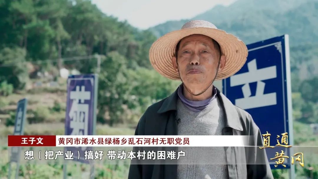 黄冈市浠水县绿杨乡乱石河村无职党员 王子文:想(把产业)搞好 带动本村的困难户,出不去的人,五六十岁的妇女,家里有孩子出不去的,带着这些人到这儿来做工,一百多元一天,没耽误功夫的(一年)搞到四五千元钱。
