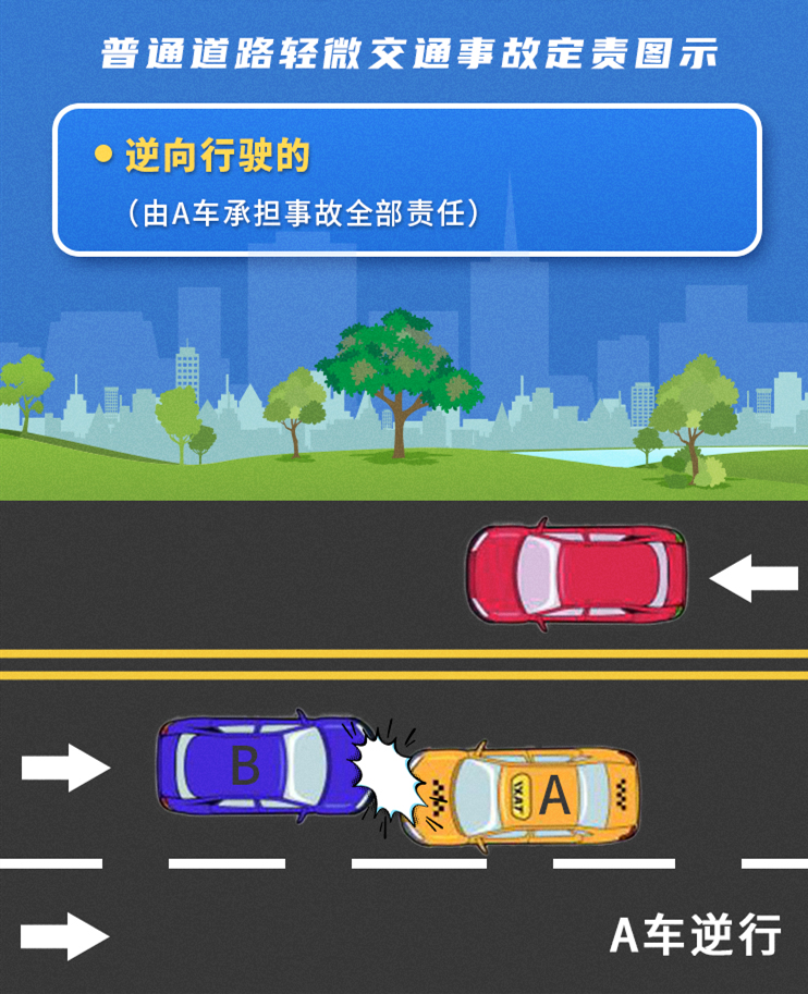 4.逆向行驶而发生事故的,这样定责↓↓↓