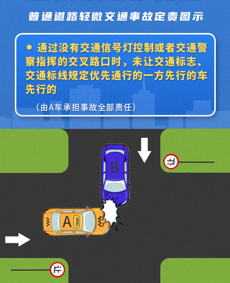 9.通过没有交通信号灯控制或者交警指挥的交叉路口时,未让交通标志、交通标线规定优先通行的一方先行而发生事故的,这样定责↓↓↓