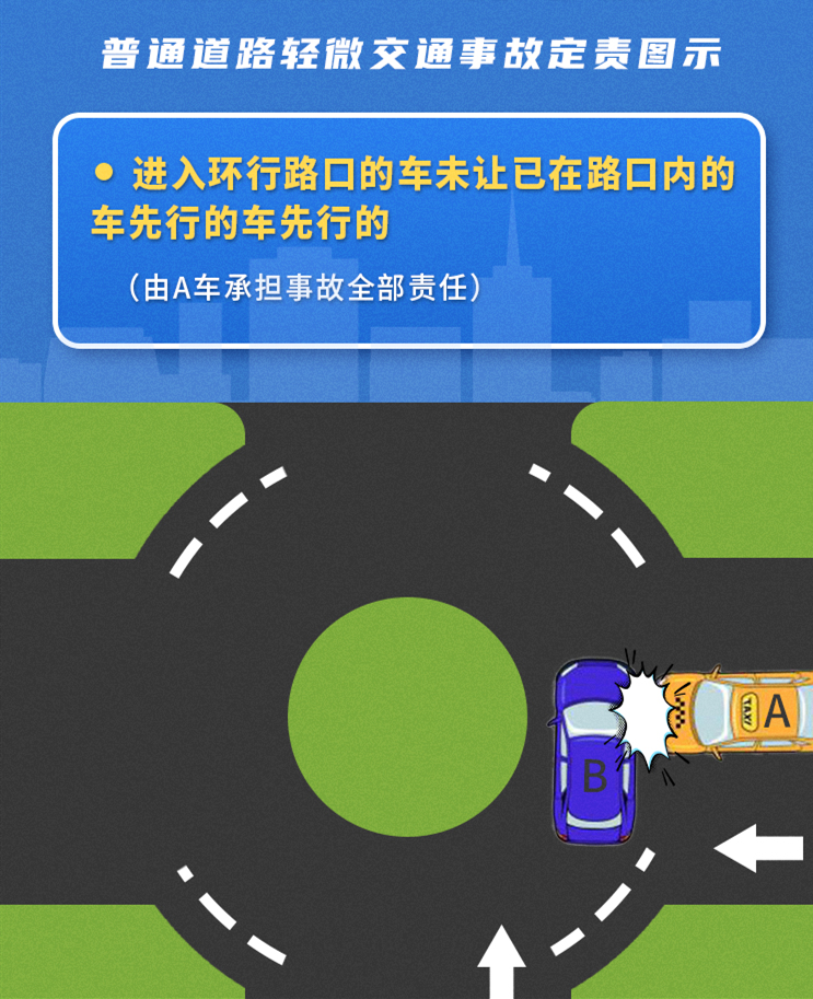 8.进入环行路口的车未让已在路口内的车先行而发生事故的,这样定责↓↓↓