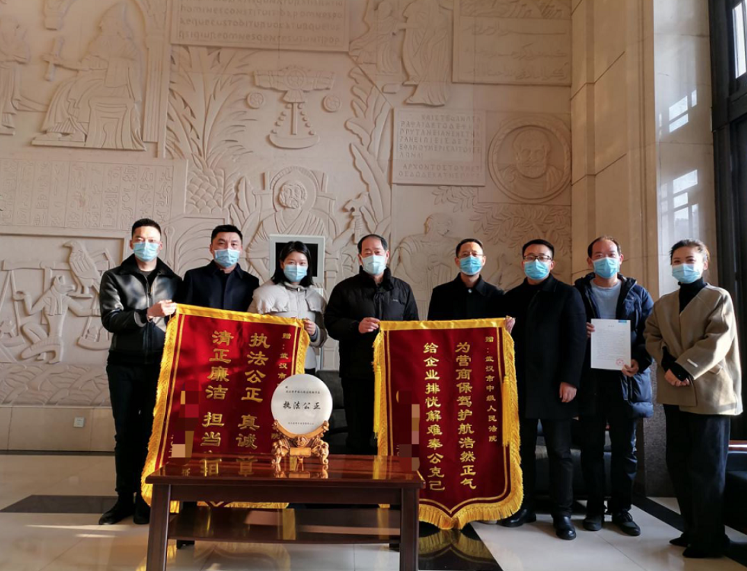 2月9日,某大型民营企业给武汉中院执行干警送来锦旗和感谢信。武汉市中级人民法院供图