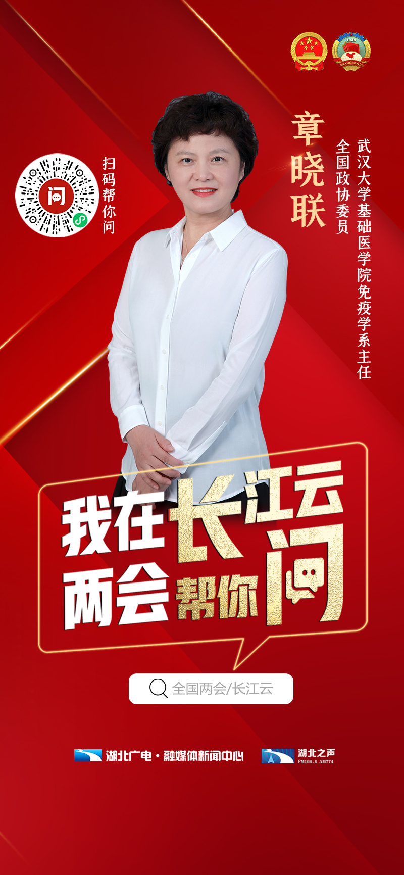 首位入驻“长江云问吧”的,是全国政协委员、武汉大学基础医学院免疫学系主任章晓联,她对疫情防控、公共卫生、医疗健康等方面十分关注。在2020年武汉疫情最严重的时期,章晓联提出了关于加强病毒核酸、抗体联合检测的建议,得到相关部门重视。她认为,核酸检测虽然是新冠肺炎确诊有效手段之一,但血清抗体检测能从另一个维度来反映病毒感染的情况,结合抗体和核酸检测还有助于分析病毒感染的进程。事实证明,这项建议对疫情防控取得决定性胜利起到了重要的作用。