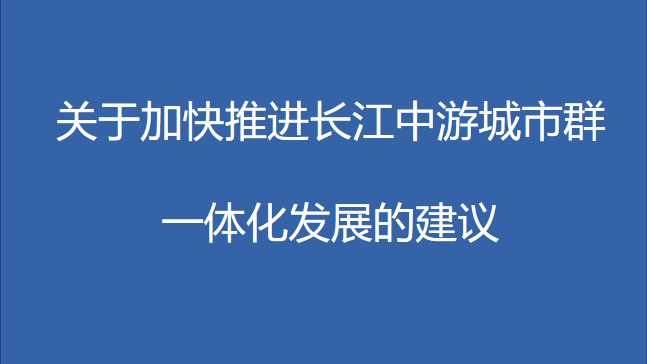 建议国家将长江中游城市群(中三角)发展战略提升为国家重大区域战略,与长三角、京津冀等重大区域战略同等地位,设立推动长江中游城市群一体化发展领导小组,促进长江中游城市群(中三角)加快发展,在长三角领舞长江经济带的同时,确保中部不出现塌陷,长江经济带能实现腾飞。