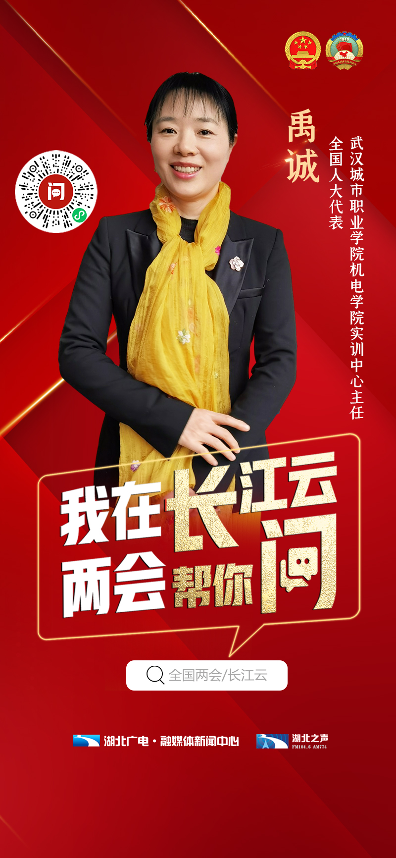 “我在长江云,两会帮你问!”2021年全国“两会”召开之际,全国人大代表、武汉城市职业学院教师禹诚入驻“长江云问吧”。广大网友可以通过湖北广电融媒体新闻中心、湖北之声联合推出的“民意带言小程序”——长江云问吧与禹诚代表互动。一起搭上两会“民意直通车”,来一场云端“头脑风暴”吧!