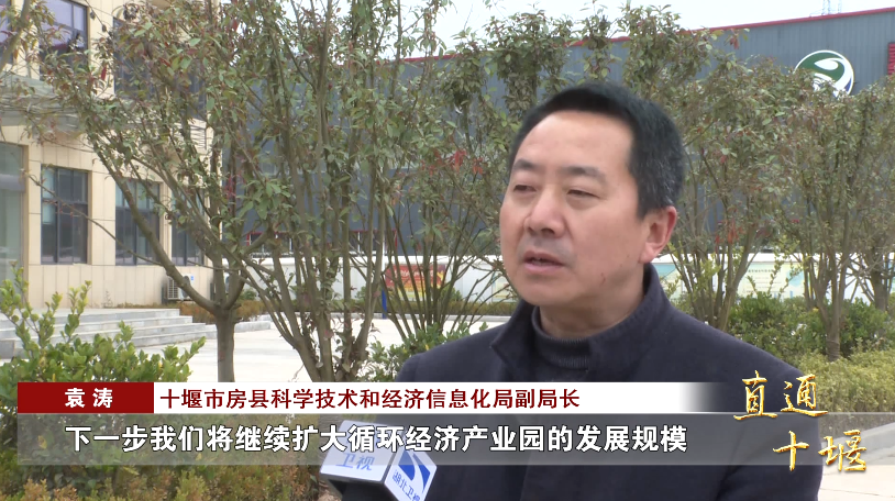 十堰市房县科学技术和经济信息化局副局长袁涛:“下一步我们将继续扩大循环经济产业园的发展规模,力争在三年内实现产值100个亿,创税收10个亿以上。”