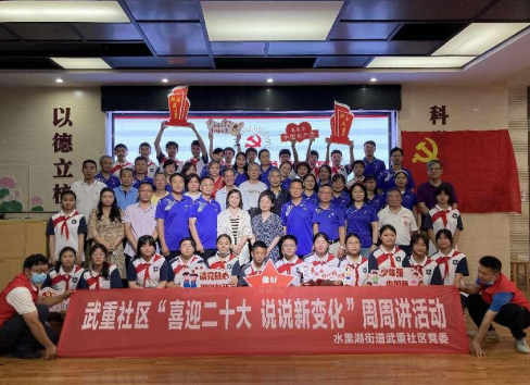 2022年6月23日,武昌区水果湖街道武重社区党委联合武汉市中北路中学党支部开展“喜迎二十大 说说新变化”周周讲主题教育活动,深入学习贯彻总书记在庆祝中国共产主义青年团成立100周年大会上的重要讲话精神,进一步推进和加强党员教育管理,发挥党员先锋模范作用,利用红色资源开展全覆盖、下沉式的宣讲,提升学习活动的吸引力、感染力。推动党员学习的常态化、互动化、创新化,同时以实际行动迎接党的二十大顺利召开。