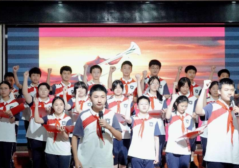 “请党放心 强国有我!”的青春誓言仍回响在耳畔,七年级党小组带来诗朗诵《少年中国说》,展现了新时代中国青少年“少年强 则国强”的强烈使命感,让青春焕发出更加绚丽的光彩。学校党小组的党员老师带来《美丽大武汉 复兴正当时》三句半节目,浓缩了武汉悠久的历史文化、独特的城市气质,句式整齐、朗朗上口,颇有新意的武汉话三句半为大家描述了一幅大江大湖大武汉的美好图景。