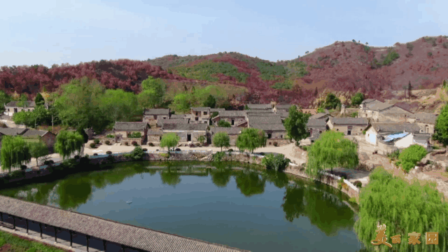 村落里,相传是"蔡知府"建起的七个门楼,按照修旧如旧原则,复原了飞檐翘壁的徽派特色。粗壮的皂荚树、挺拔的银杏树上,挂满了红灯笼。在错落的房屋之间,盛开的杏花色彩浪漫艳冶。