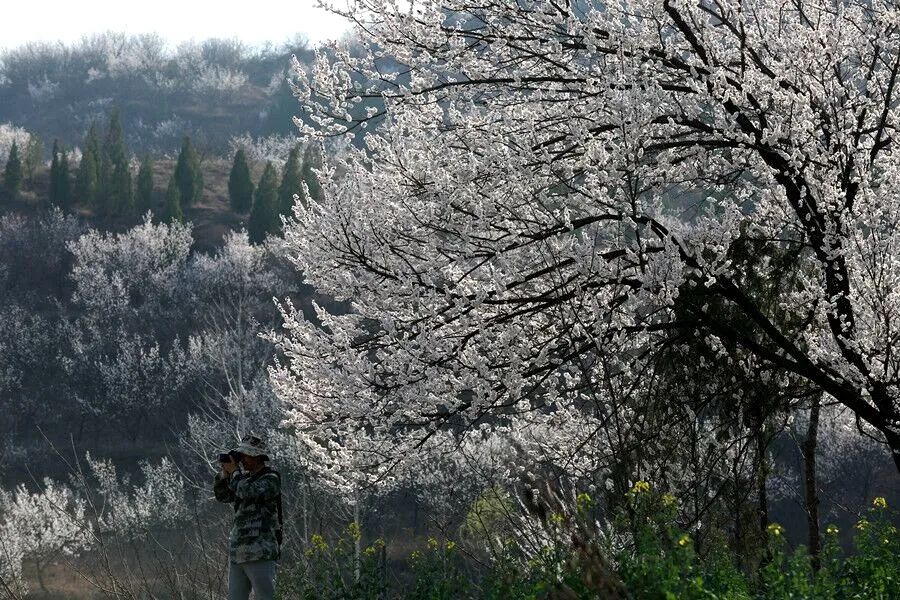 春日里的木兰天池是杏花的天堂,万亩野生杏花遍布森林峡谷间,千朵万朵如云似海,山谷的青翠与杏花的烂漫相映成画。似满天繁星,又似白雪点点。在阳光照耀下,熠熠闪光,无比耀眼。