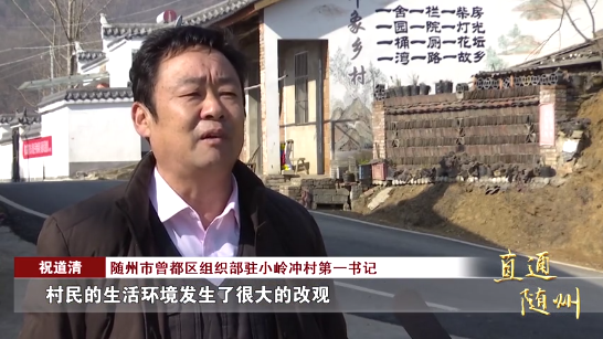 随州市曾都区组织部驻小岭冲村第一书记祝道清:“村民的生活环境发生了很大的改观,通过产业奖补机制,增强了农民发展自主产业的积极性,大大地增加了农户的收入。”