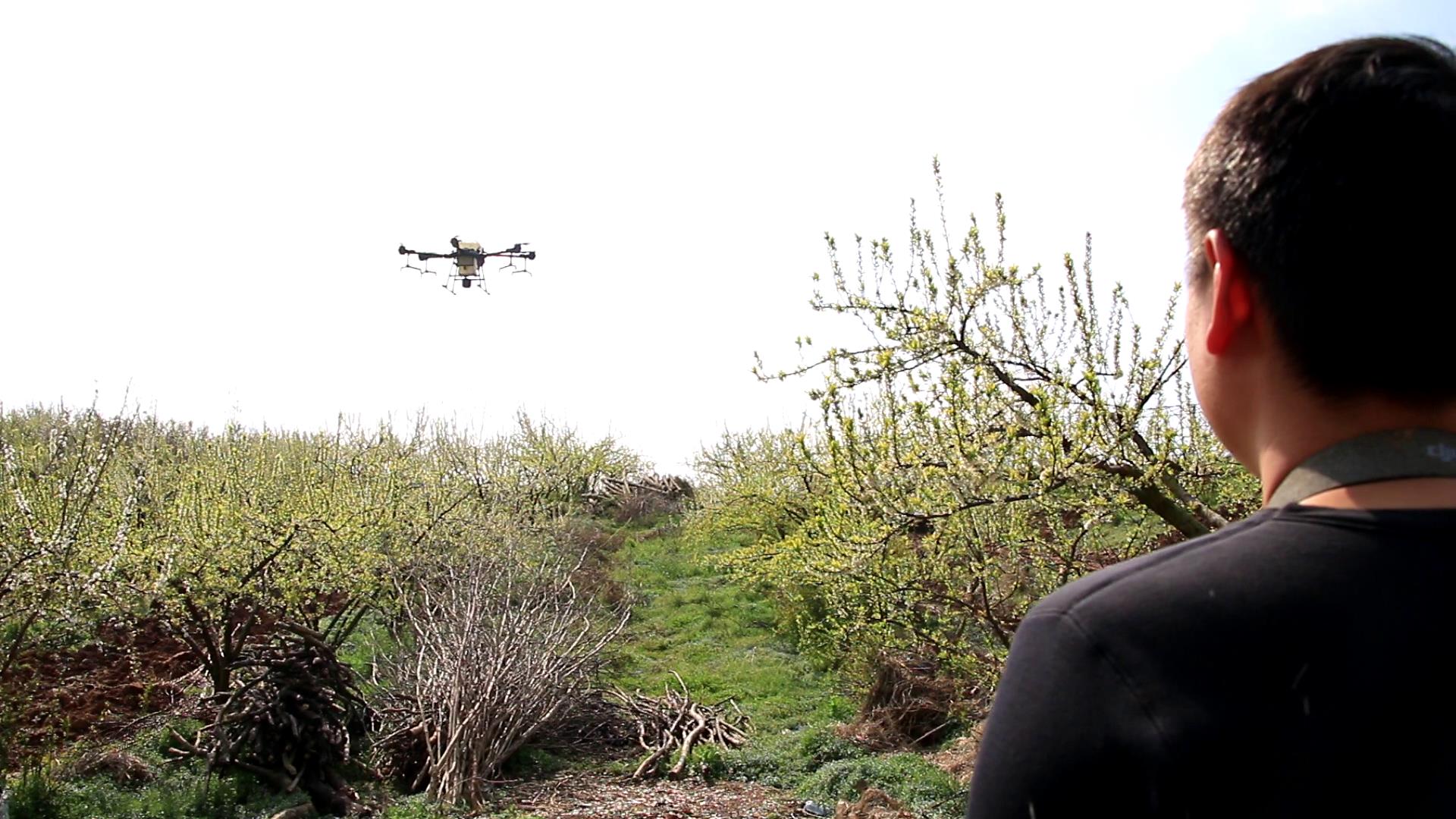 走进武安镇洪山寺村,满山遍野的李子花即将凋谢。林地上空,一架植保无人机正在喷洒药物。据农场负责人朱诚程介绍,他种植的800亩李子树,进入丰产期的有400亩,采用无人机喷药,2天就可以完成果树的病虫害防治。“我们正在给李子树打药除厌虫,目前是果树落花期,也是虫子繁殖速度最快的时候,在幼虫的时候消灭它,果树成熟时就有一个好收成。”