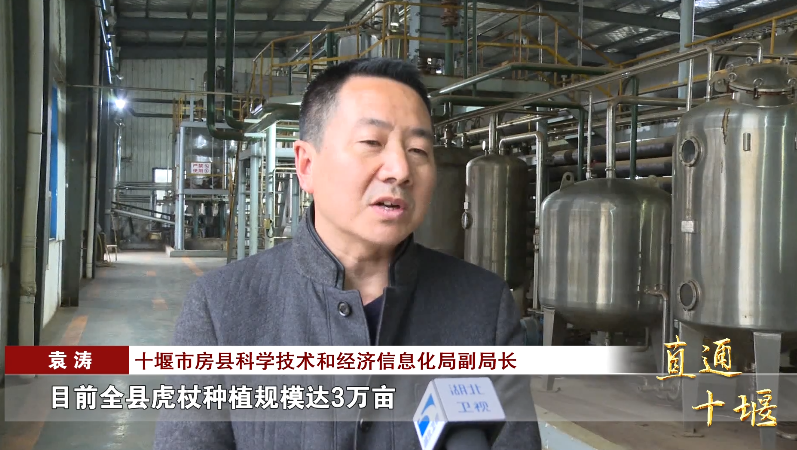 十堰市房县科学技术和经济信息化局副局长袁涛:“目前全县虎杖种植面积达3万亩,亩产量在10000斤以上,可以实现产值1亿元,整个虎杖产业每年可以实现产值3亿元左右,为全县产业发展,农民增收发挥了重大的作用。”