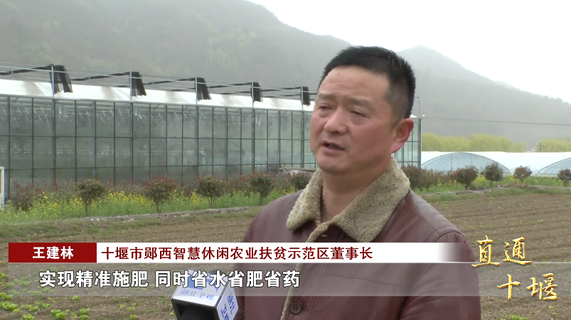 十堰市郧西智慧休闲农业扶贫示范区董事长王建林:“肥料直接放在施肥罐里面,从机器上直接打过来,实现精准施肥,同时省水省肥省药。”