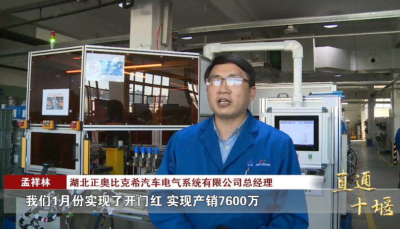 湖北正奥比克希汽车电气系统有限公司总经理孟祥林:“我们1月份实现了开门红,实现产销7600万,2月份7300万,3月份预计达到9000万,创历史最高纪录。”