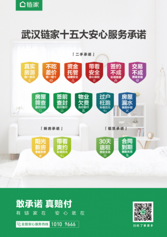 近年来,武汉链家在提升客户服务体验上不断改进。2018年,推出“30124”客诉响应体系。2020年,正式将安心服务承诺升级为十五项,囊括从签约前到签约后购房全流程,为消费者的房屋交易保驾护航。安心服务承诺推出至今,武汉链家累计提供安心保障金5796.06万,累计赔垫付8139笔。通过“敢承诺,真赔付”,链家致力于为每位消费者打造房产交易的安全感。