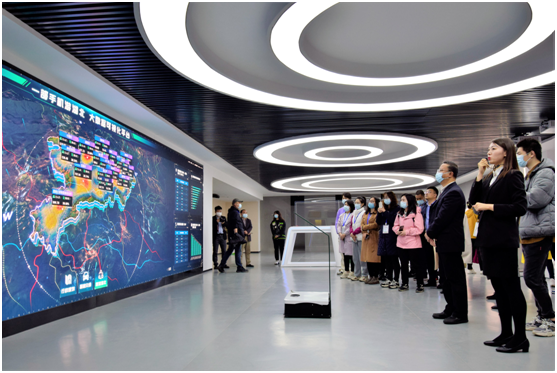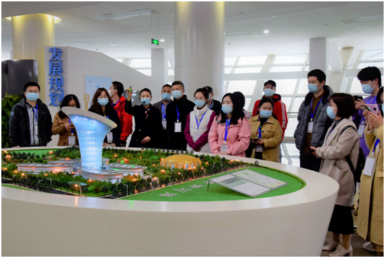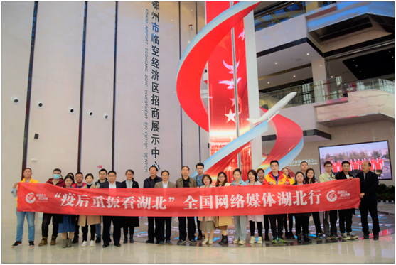 为充分发挥鄂州作为国内第一个专业货运机场所在地的区位优势和“铁、水、公、空、高”多式联运综合交通优势,鄂州市以鄂州花湖机场为依托,成立省级开发区——鄂州市临空经济区。图为:采访团在鄂州市临空经济区招商展示中心合影。