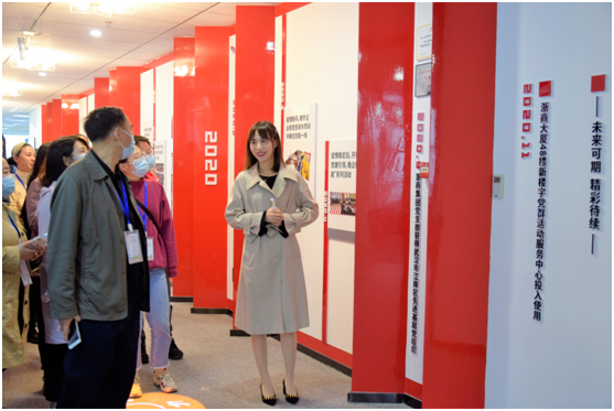 在浙商大厦,采访团了解江岸区金融产业发展和优化营商环境情况。据了解,作为建设大道金融产业集聚区“龙头”楼宇的浙商大厦目前共有60家企业入驻, 2019年、2020年浙商大厦入驻企业共贡献税收约12亿元。图为:采访团在浙商大厦党群活动服务中心参观。