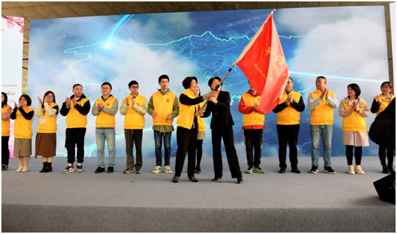 3月30日上午,由中央网信办主办的“铿锵奋进的脚步 续写春天的故事”系列网络主题宣传活动在全国七地同步启动,湖北省同步开展“樱花又开放——疫后重振看湖北”网络主题宣传活动,当日至4月3日,由人民网、央视网、长江云、腾讯等全国24家媒体组成的采访团奔赴鄂州、武汉、宜昌和潜江等地开集中采访,宣传报道湖北疫后重振交出的“英雄答卷”。图为:采访团出发前的仪式。