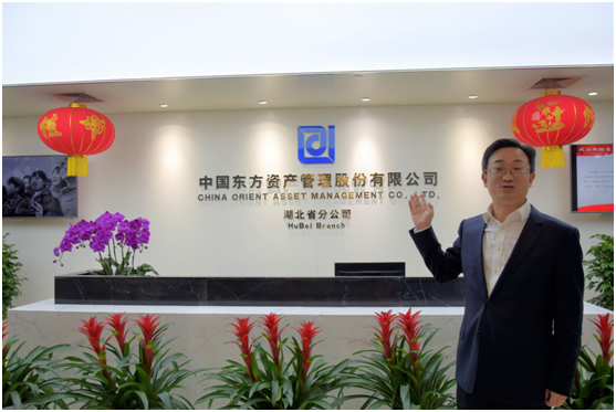 图为:记者来到浙商大厦中的中国东方资产管理有限公司湖北省分公司,中国东方资产管理有限公司湖北省分公司党委书记、总经理黄鹤正在为采访团介绍情况。